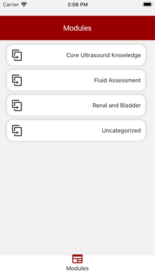 We included the latest videos, content, and modules available through the Indiana University School of Medicine Point of Care Ultrasound education content. This app is intended as an education companion for POCUS enthusiasts engaged in IU School of Medicine POCUS training content. Links are included for further education content on other platforms, as well.