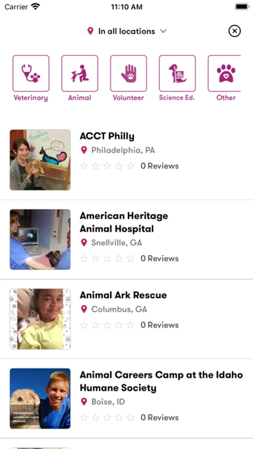 You can search for opportunities by location and the experience type.