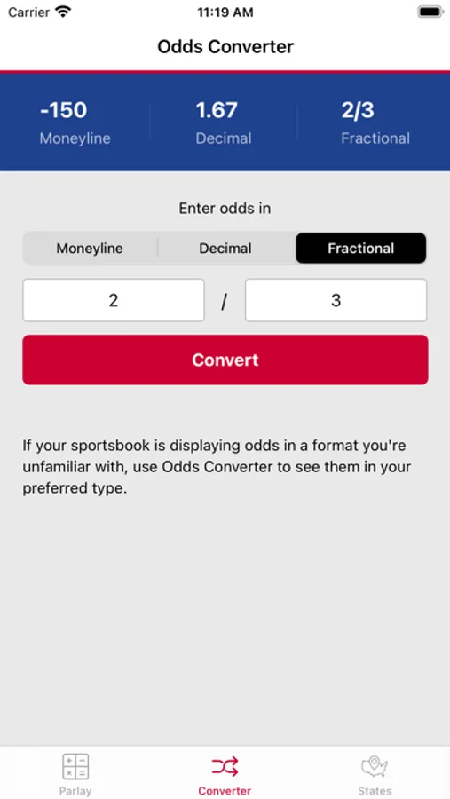 As online betting is relatively new in the US, we've also included Odds Converter so that you can quickly and easily view the odds of your sportsbook in the format you prefer.