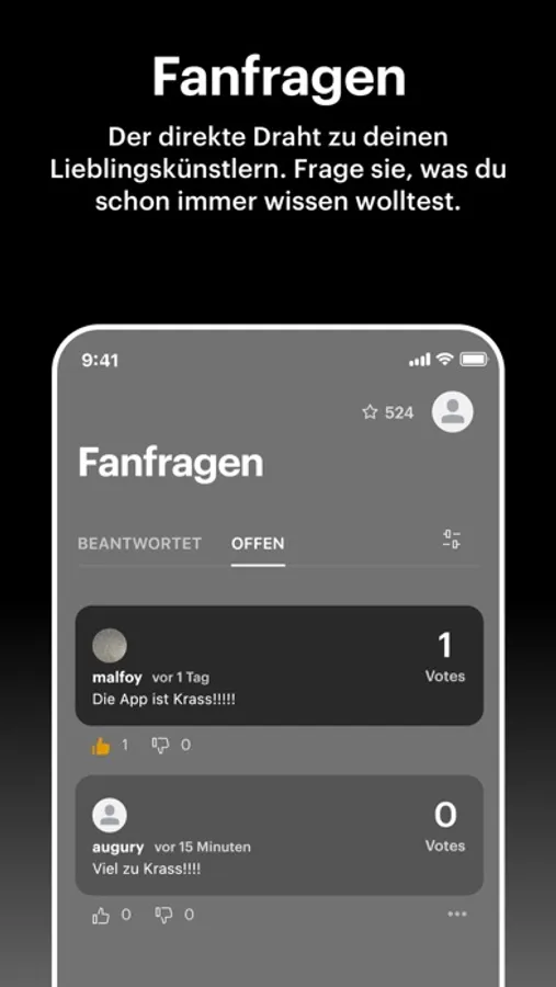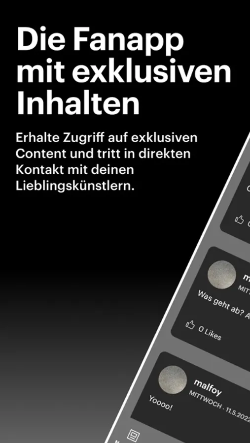 Mit der Fanapp erhältst du exklusiven Content und kannst in direkten Kontakt mit deinen Lieblingskünstlern und anderen Fans treten.