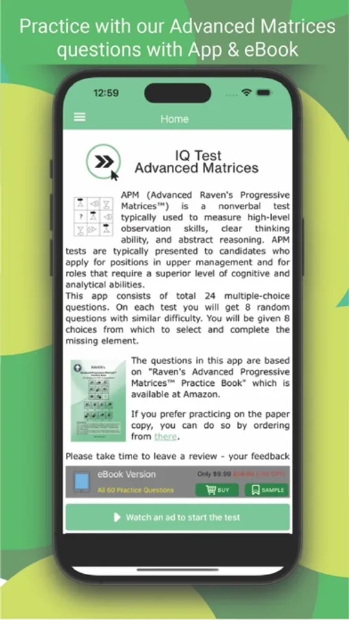 Boost your IQ with our Advanced Raven's Progressive Matrices prep app! Unleash your cognitive potential and master the Advanced Raven's Progressive Matrices IQ test. Sharpen your problem-solving skills, enhance your logical reasoning, and elevate your intelligence to new heights. Download now and unlock your mental prowess!