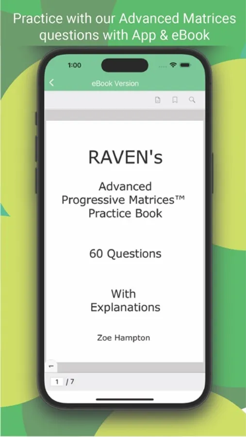 *Raven’s Standard Progressive Matrices™ and Advanced Raven's Progressive Matrices™ are registered trademark of Pearson Education, Inc. or its affiliate(s), or their licensors. The author of this mobile app (shortly referred as “the author”) is not affiliated with nor related to Pearson Education, Inc. or its affiliates (“Pearson”). Pearson does not sponsor or endorse any author’s product, nor have author’s products or services been reviewed, certified, or approved by Pearson. Trademarks referring to specific test providers are used by the author for nominative purposes only and such trademarks are solely the property of their respective owners.*