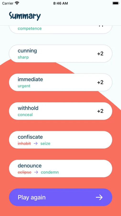Pick synonyms or antonyms and test yourself against the clock. We'll help you learn where you went wrong, so that each time you play, you will raise your game. Challenge yourself to beat your own high score, time and time again, whilst building your vocabulary along the way. Our words are carefully chosen by expert tutors to prepare you for anything the 11+ may throw your way.