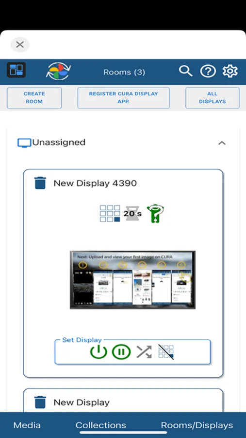 6. Note: you can access and manage your CURA account, multiple displays, collections and media from this app, ANY browser on a PC, or mobile device. At https://curapp.io. How to help and videos are at https://curatortec.com/support. Tech support only an email away at support@curatortec.com