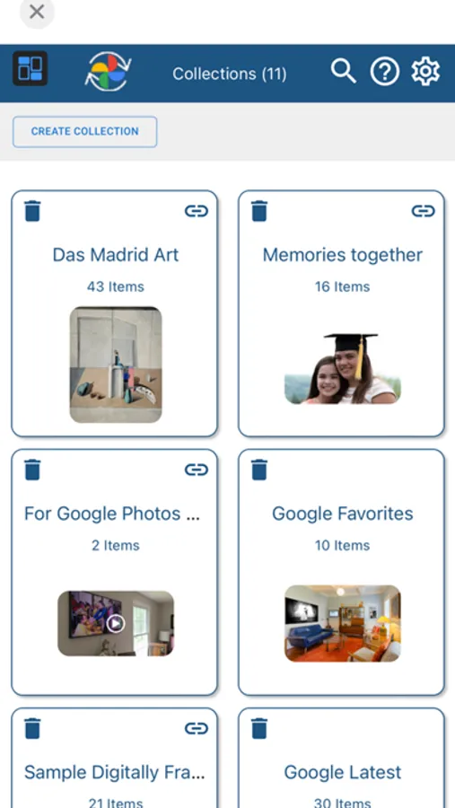 3. Optionally select (and save) albums from the linked Google Photos library and create Collections that can be linked to your Google Photos Favorites, Albums, Shared Albums or Dynamic Albums. CURA will keep these updated every hour.