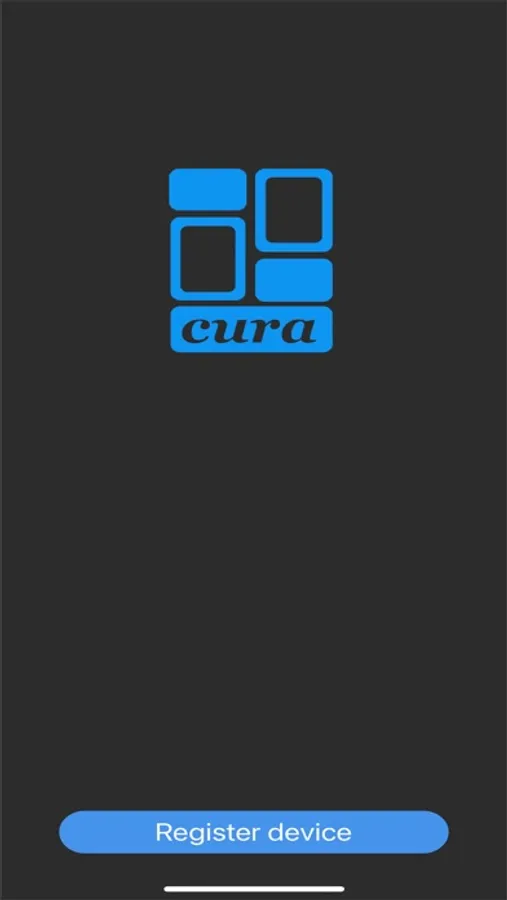 1. Install the Cura-Home app, open it and register this device to your CURA account (you can register for a new account for free if you don’t already have one). Success will be your device displaying the CURA Welcome Start Up Collection.