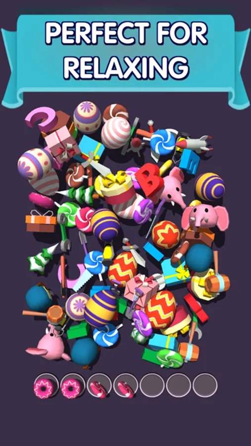 - Pick up three (Tripple Match) or two (Class Match) same 3d elements from a pile of messed-up items and eliminate them.