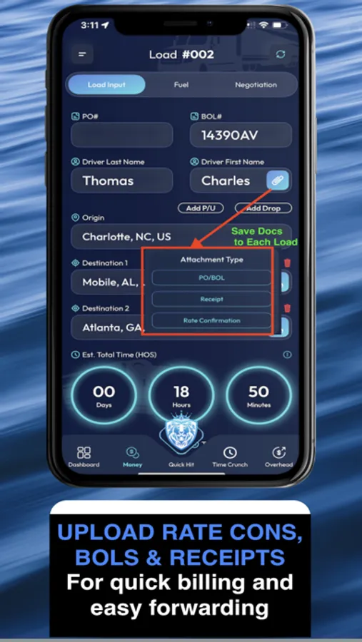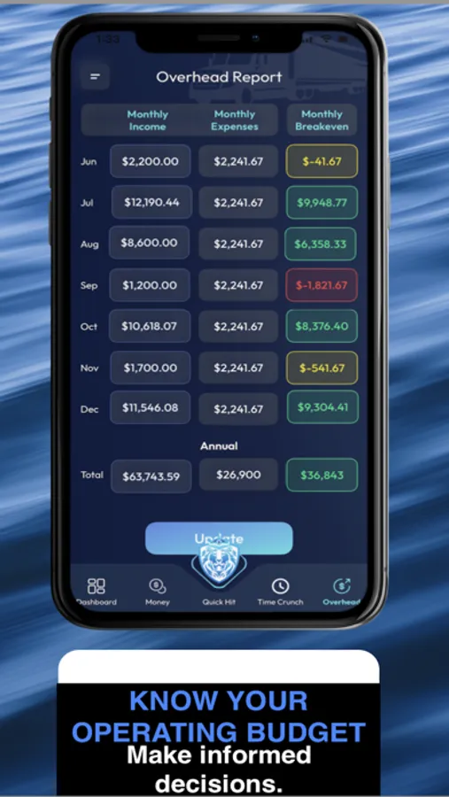 Save time and streamline your operations with cloud-based load management. Store load specifics, upload BOLs, invoices, and receipts in one secure place for quick billing. Monitor your monthly earnings and utilize the Overhead Report to pinpoint your breakeven point.