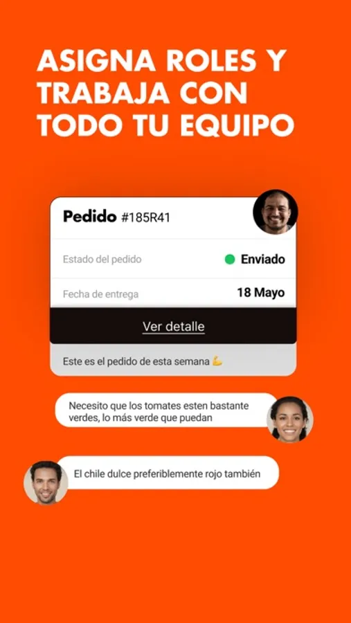 - Conecta con todos tus clientes desde un chat hecho para evitar errores en los pedidos.