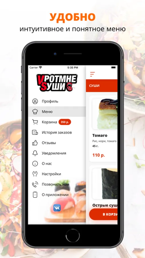 Приложение ВРОТМНЕСУШИ — это удобный способ заказа еды домой или в офис! Мы готовим наши блюда из качественных свежих ингредиентов и доставляем еду быстро и бережно.