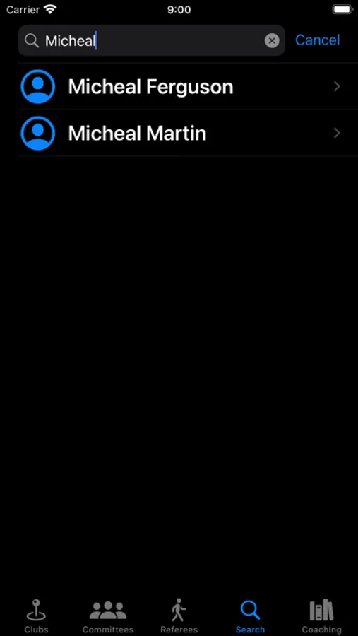 • Connects users to the contact information for team managers, club officials, county officials and referees.