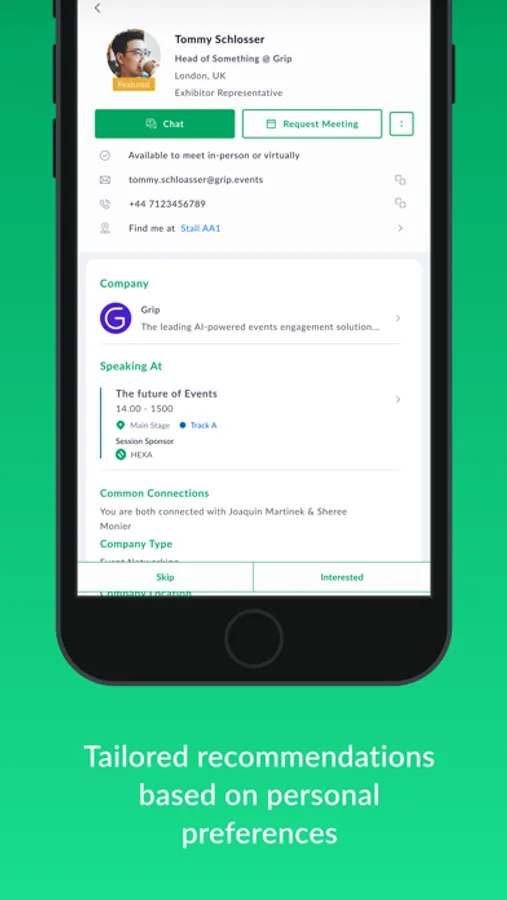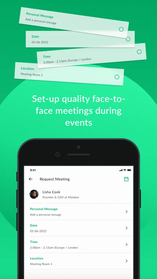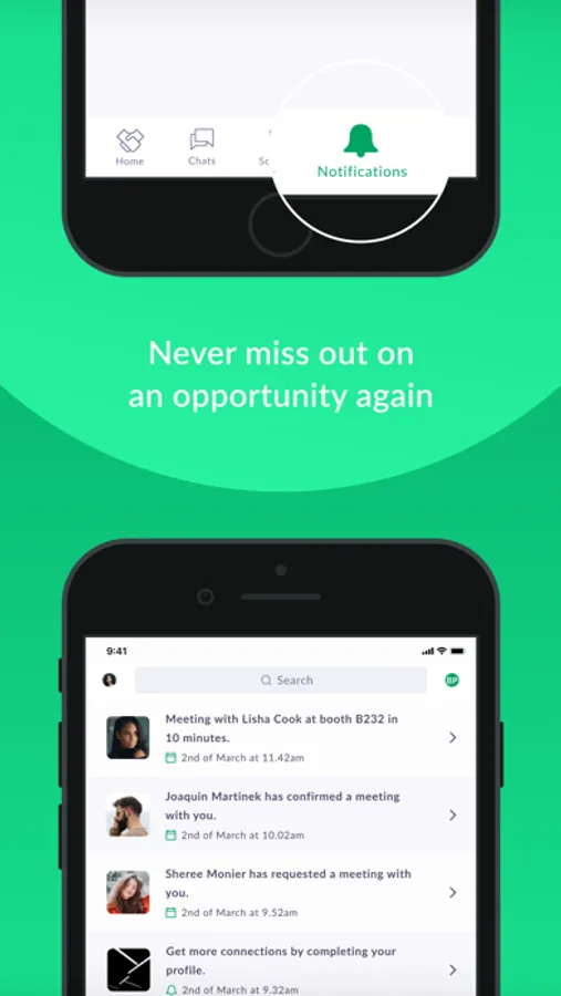 *View attendee profiles, chat and set up 1:1 business meetings in-person at events and virtually