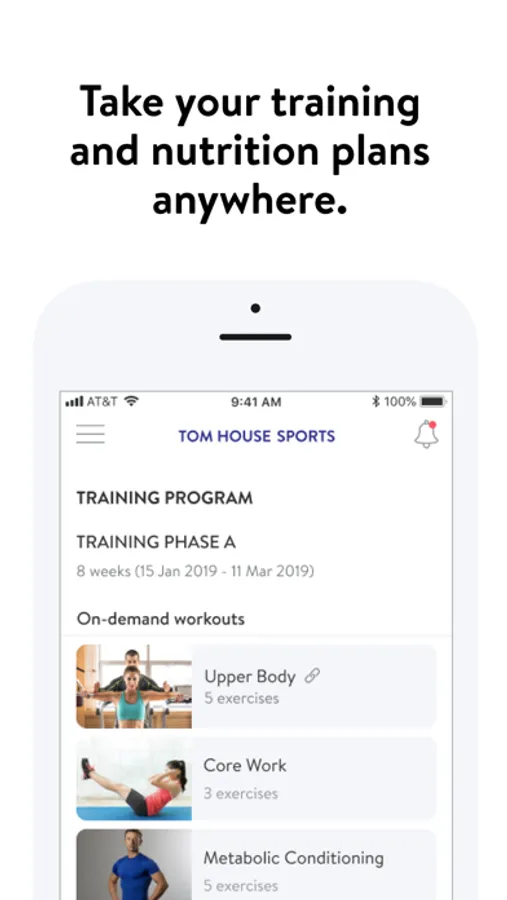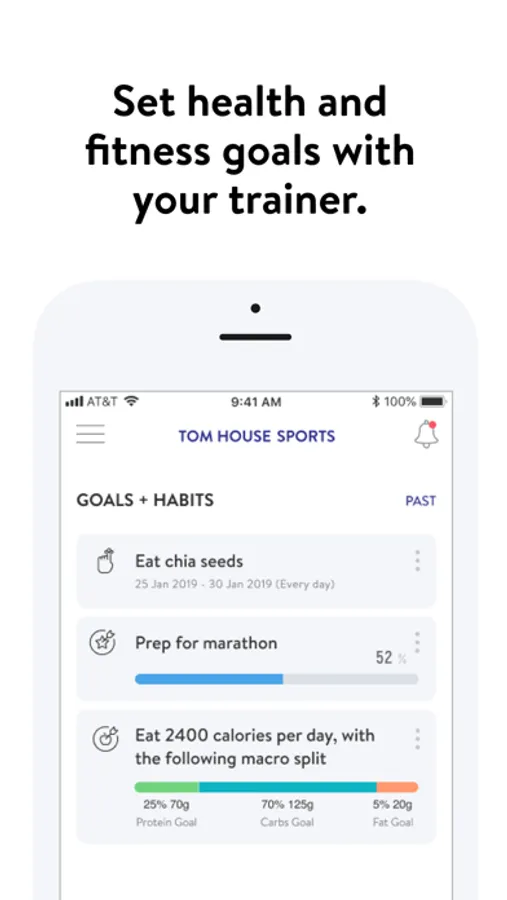 With the Tom House Sports Fitness App, you can start tracking your workouts and meals, measuring results, and achieving your fitness goals, all with the help of your personal trainer.