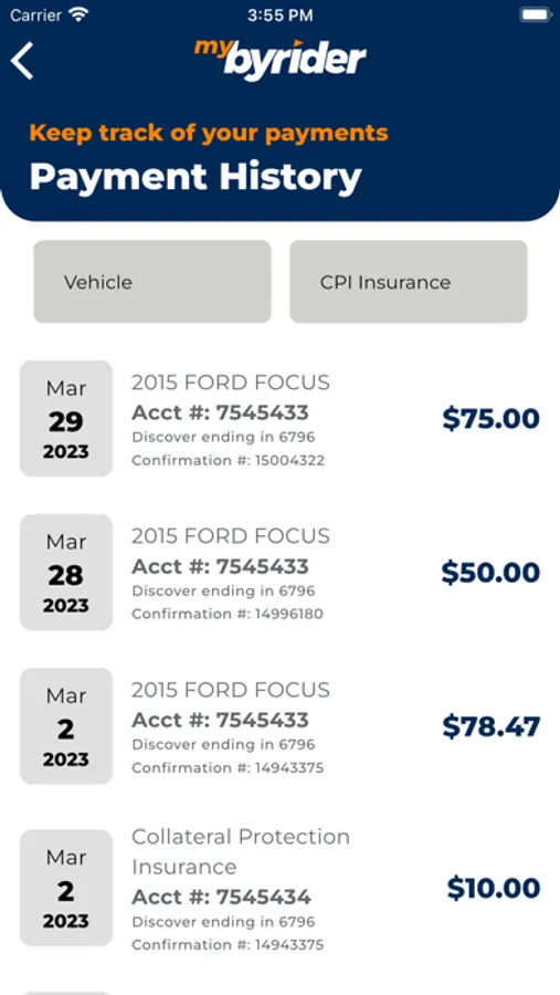 Welcome to the Byrider App! This free App allows you to improve your ownership experience of the vehicle you purchased from a Byrider dealer. You can manage and make payments for your CNAC account. The app allows you to do the following: