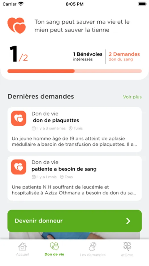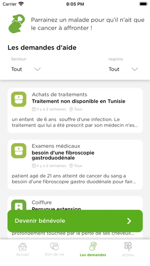 « Tnajjem » est une application mobile communautaire destinée essentiellement aux personnes atteintes d’hémopathies, à leur entourage et à toute personne souhaitant prêter main forte aux patients souffrant de cancer et de précarité.