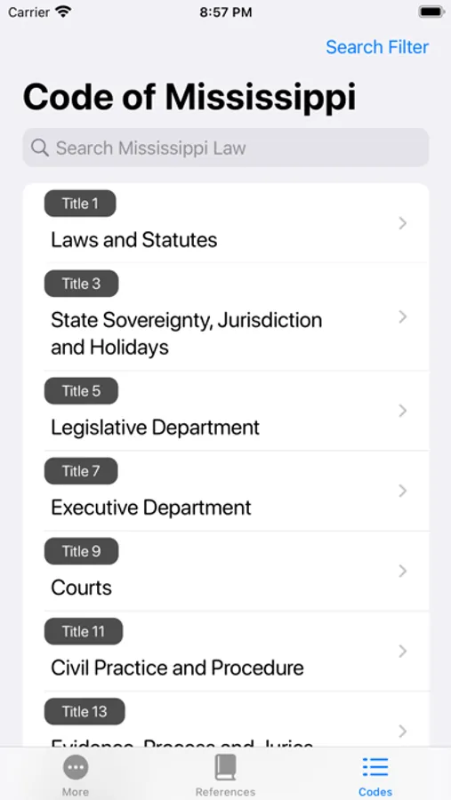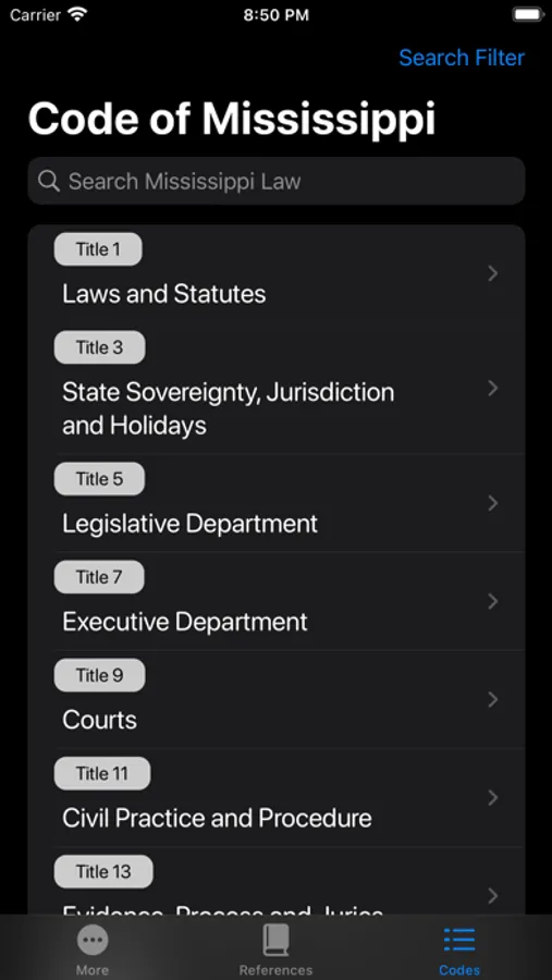 Convenience is crucial. Whether a law enforcement officer or a professional in the field of law, we have simplified the Mississippi state statutes for easy use. We not only made the process of navigating through these laws more intuitive, but have added more functionality to enhance your interaction with said laws. Currently, all codes are alphanumeric searchable, which can be further adjusted via filtering to fit your searching needs. Other conveniences have been added in various ways, such as offering common warnings and bookmarking functionalities. All state statutes can be fully accessed offline.