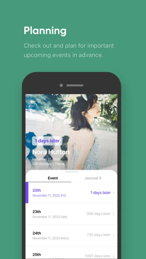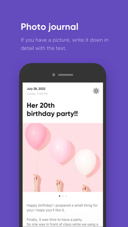 You can see important memories and emotions of this month at a glance through the calendar view and timeline view. And, since you can link journals to events, it is convenient to recall memories for each event.