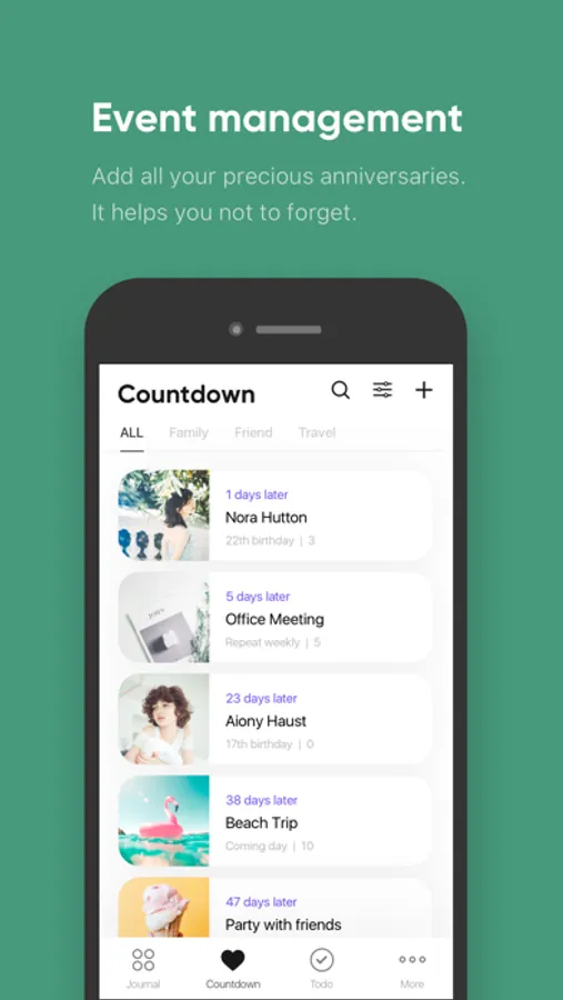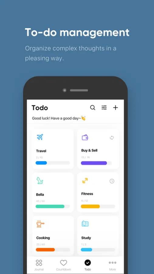 'DayColor' manages 'Journal, Countdown, to-do' at once.