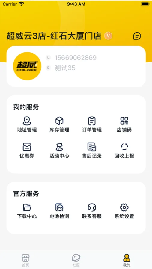 超威云商城客户端是销售超威电池的客户(各个终端门店)使用的一款软件,客户通过超威云商城客户端接收公司信息、行业资讯,实现公司-代理商-终端客户线上沟通渠道,同时终端客户通过云商城客户端软件实现线上订单的接收、管理以及其它平台订单的派单等功能。