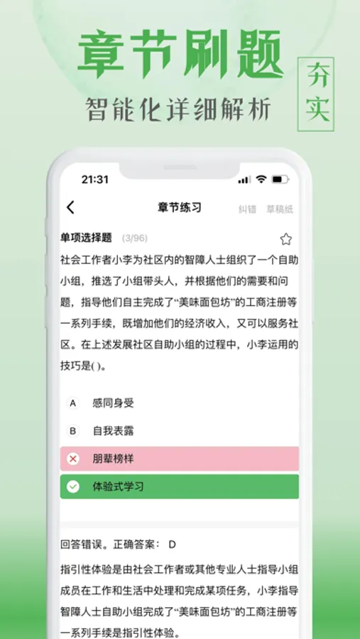 社区工作者题库是一款随时随地可用的智能高效刷题软件。考生可通过设置备考目标,快速开启高效提分计划。同时我们拥有超大型在线题库,主要功能包括章节练习、随机练习、高频考题、历年真题,模拟考试等多种形式,让学生边学边练,达到进一步巩固学习效果的目的。在考前冲刺阶段还有考前模拟试题,帮助学员模拟实战,把握考试精髓,增加考试通过率。