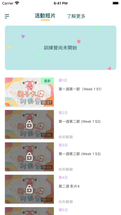 簡潔操作界面、定時提示用戶每週完成三節遊戲短片,完成後可隨時重溫
