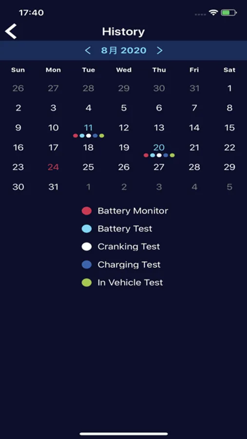 Easily identifies which and when that the test has been performed from the calendar.