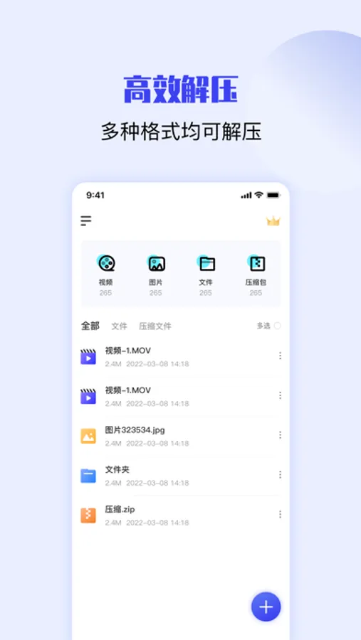 Support multiple selection of videos, images, files, etc., with one click compression processing;