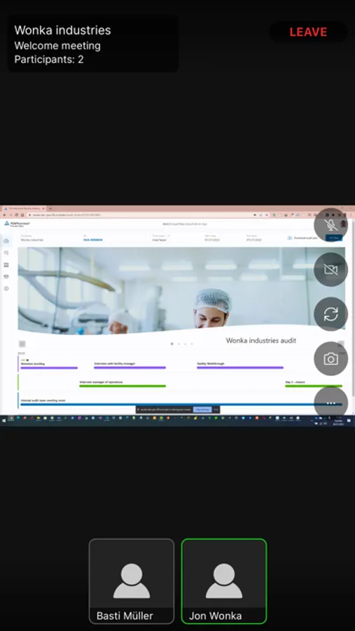 The RAS application is used on mobile devices to participate in audit sessions. Audit participants can use their smartphone or tablet as a mobile camera to conduct audits in production lines, warehouses or outdoors.