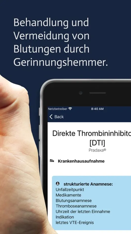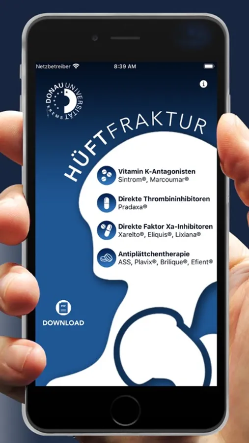 Die Hüftfraktur App ist ausschließlich für Ärztinnen und Ärzte gemacht, die zuvor oral antikoagulierte Patientinnen und Patienten mit einer hüftnahen Fraktur behandeln.