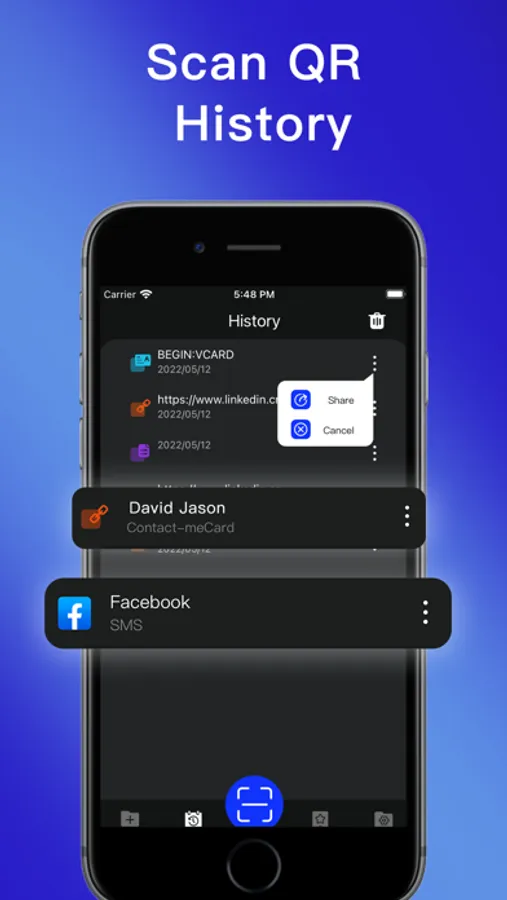 All QR code records created by scanning are permanently saved, and the history list is easy to manage and clear the history of access locations and QR code links. To protect your privacy! Logs are only stored locally.