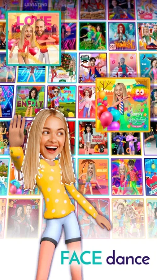 Create content for such holidays as Christmas, New Year, Valentine’s Day, Halloween, Thanksgiving and more – and this is not even a full list. Pick up a template that matches your occasion and upload your face. This free dancing app provides a diversity of choices considering templates.
