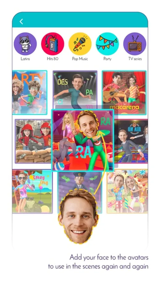 Face swap yourself with our video generator to quickly produce amusing custom memes, gifs and videos. Choose from different categories such as 80s - 90s hits, carnival vibes, TV shows and Latin music. Make videos with the funniest scenes and music to reface yourself. Discover various original themes such as love, gay pride, birthday, princesses and many more! We offer you many different options to show your moves. Choose your favorite scene, put your face in a hole and turn yourself into a dancing star. Create funny videos with your face in!
