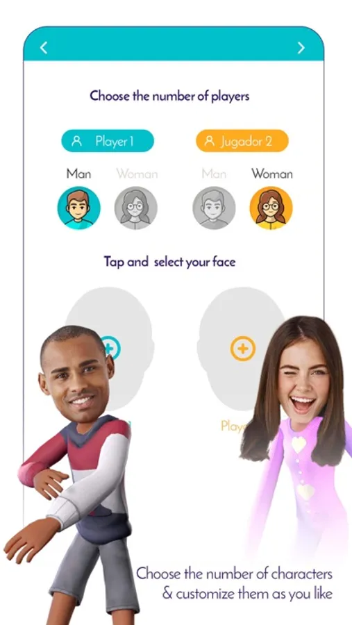 Take a photo or upload a photo from your gallery and start to customize your dancer. Choose face shape and skin color options to have the best result with your character. Create your own dance video with your personalized avatar!