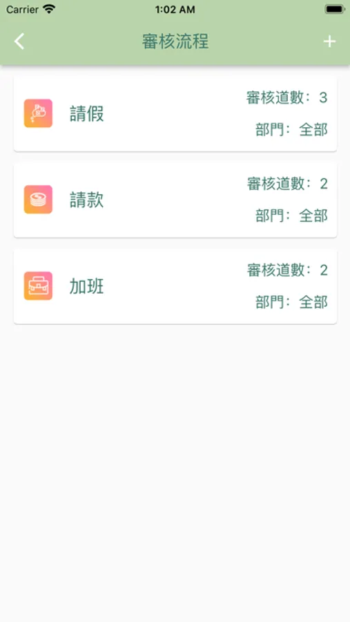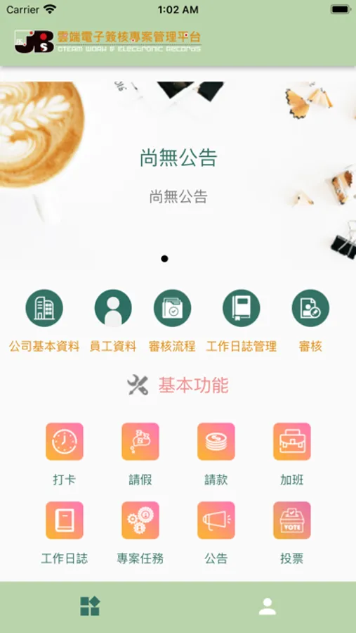 審核項目包括請假、加班、出差、請款、公告.......等申請。