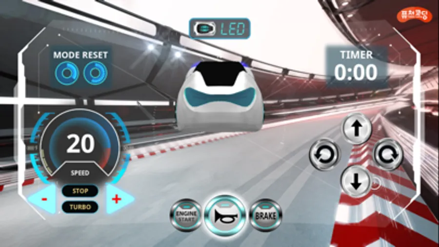 터보 버튼을 누르면 코딩카가 전속력으로 달려가요.