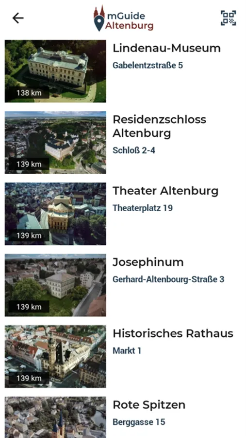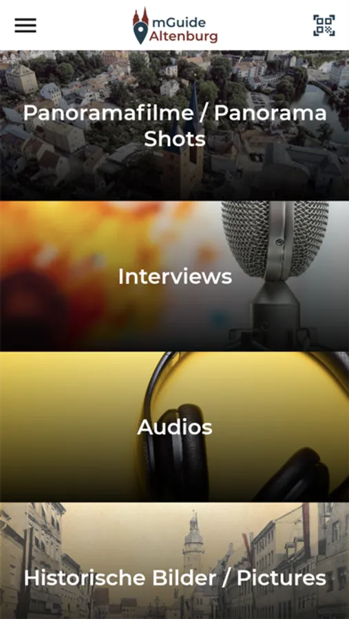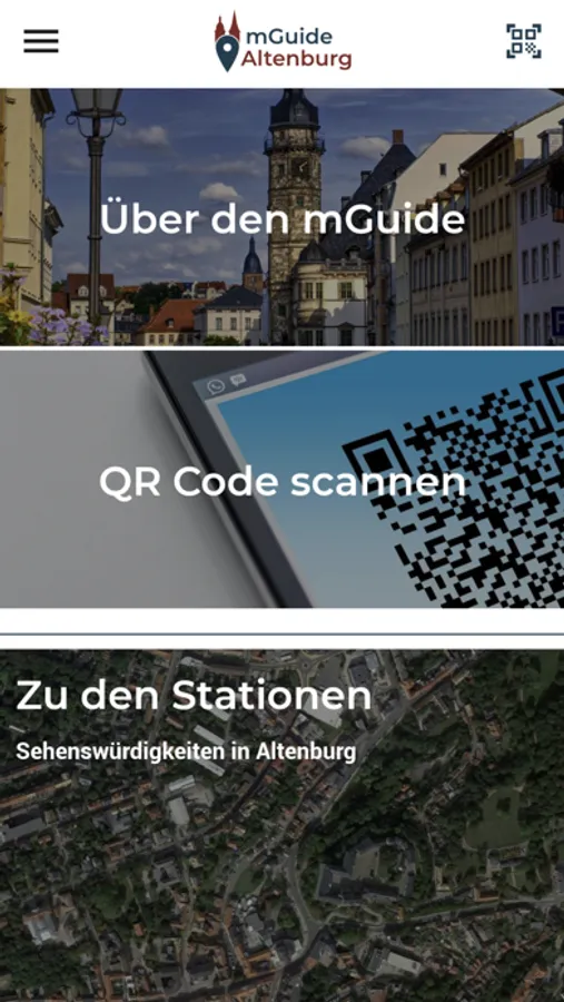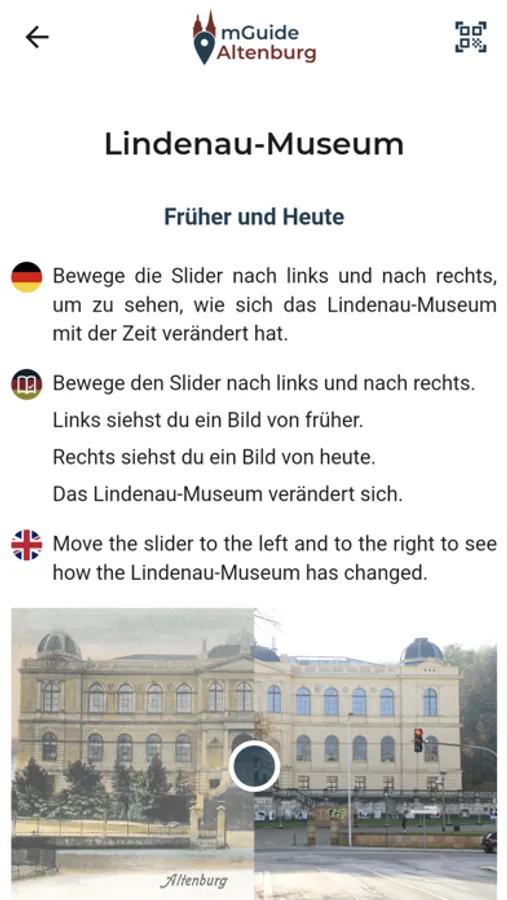 Wenn du bei einer Sehenswürdigkeit einen QR-Code entdeckst, kannst du ihn mit dem mGuide scannen, um mehr zu erfahren. Oder du erlaubst der App den Zugriff auf deinen Standort, um dich direkt zu den interessantesten Orten navigieren zu lassen.