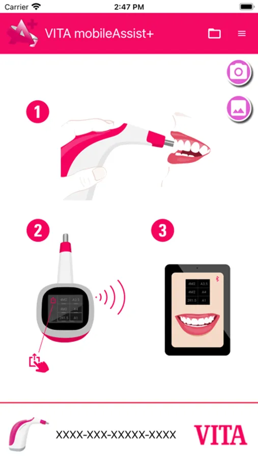 VITA mobileAssist+ enables efficient communication of tooth shade information between dentists and dental laboratories or patients. Tooth shade information measured with the VITA Easyshade V is transferred to the VITA mobileAssist App+ via Bluetooth. This information can be combined with a patient foto to document, save and send the initial situation and individual characteristics of the patient's teeth.
