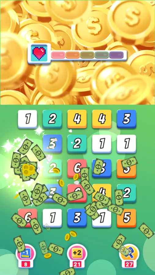 - if there is a new chain of 3 and more number including the changed one, they pop and you get the scores!