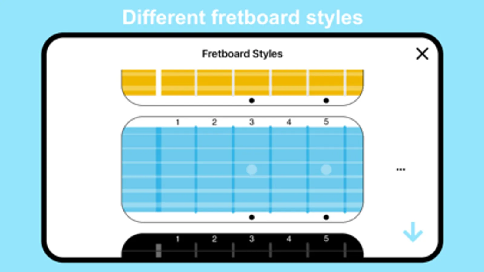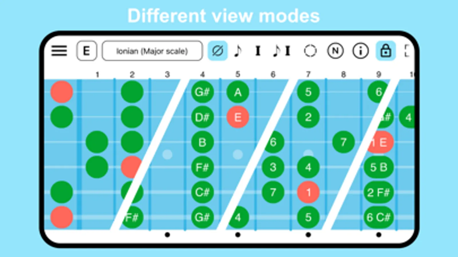 Guitar Fretboard app is designed to help you learn scales, memorize fretboard and train your ear. Allows to customize every aspect of displaying a scale or chord notes/intervals on a guitar fretboard. Also shows each scale degree chords and modes with ability to highlight a chord on a scale.