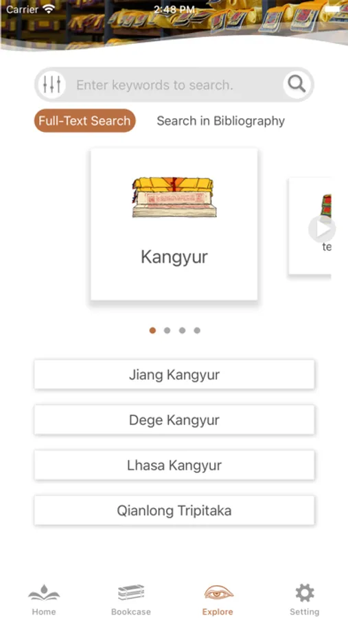 1. ADARSHAH is an app that lets you read and conduct searches of ancient documents in a digital format. There are three main categories of texts: (a) Kangyur (the words of the Buddha translated into Tibetan); (b) Tengyur (commentaries by Indian scholars translated into Tibetan); and (c) Tibetan Buddhist texts.