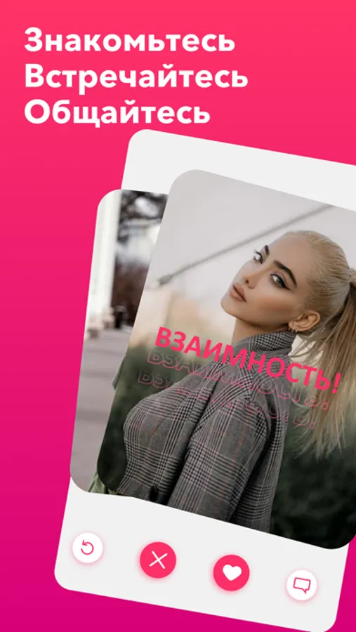 1. В нашем приложении уже привычные всем свайпы, взаимные симпатии, чаты.
