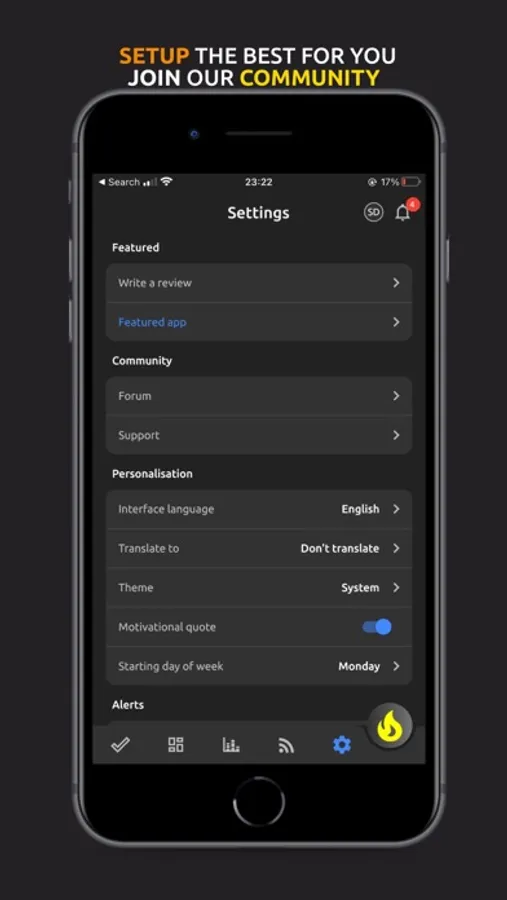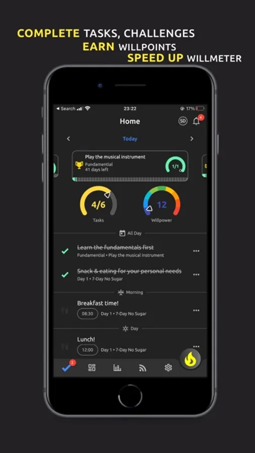 Willpower is equipped with statistics to understand how you are doing. You also have the opportunity to join the community by adding friends to communicate with them, follow their achievements and share your successes with others.