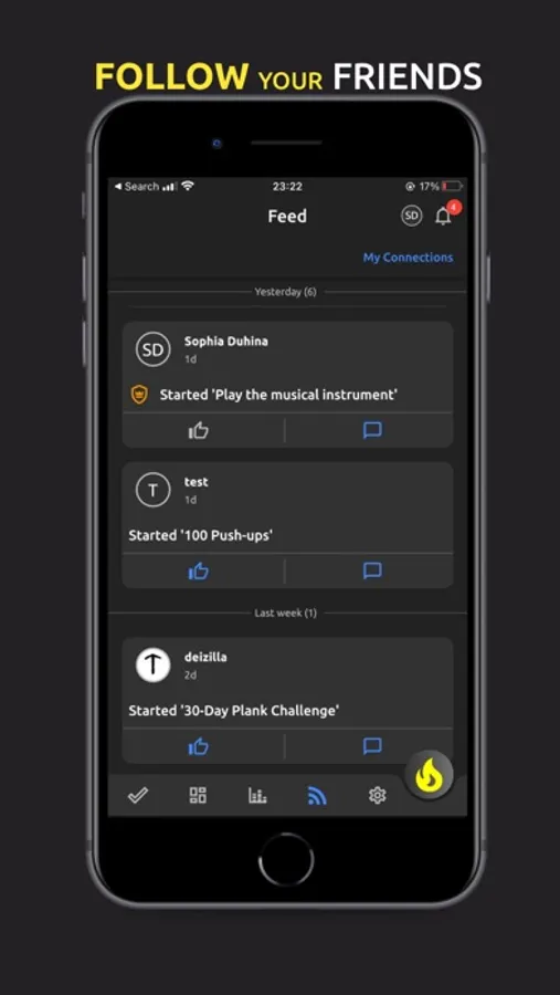 Connect with other members, invite your friends and discuss your and their successes. Follow your connections progress in the Feed.