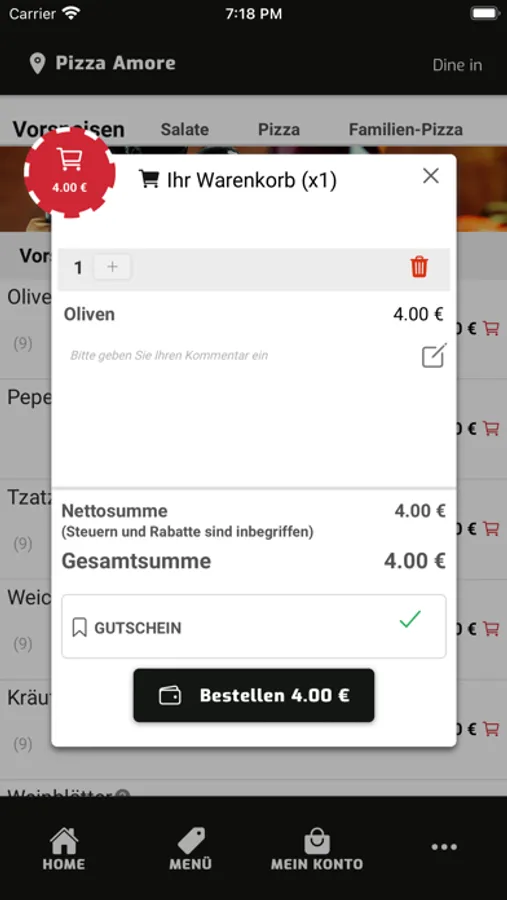 Herzlich Willkomen bei Pizzeria Amore in Gummersbach. Wir bedienen unsere Kunden mit Türkische Pizza, Pasta, Salate, Hähnchenbrust Speisen und machen das seit mehreren Jahren aus Leidenschaft. Wir freuen uns immer wieder neue Kunden unsere Herkunft näher zubringen und möchten ihnen die Möglichkeit geben, ihre Bestellung unkompliziert und total einfach abzugeben. Aus diesem Grund, möchte wir ihnen unsere neue App und unseren Online Shop vorstellen, mit dem Sie problemlos über Paypal, Bar und Kreditkarte zahlen können.