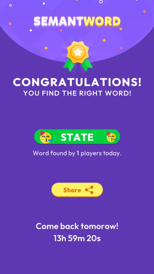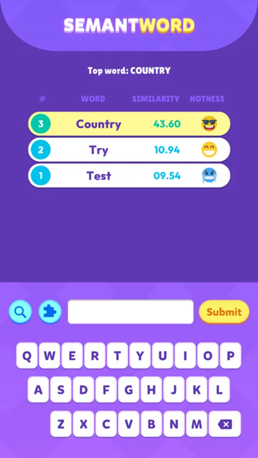 Use the similarity meter to help you out. If the definition of the word you have to find is close to the word you typed, the similarity meter will have a high score! If this score is 100, you won!