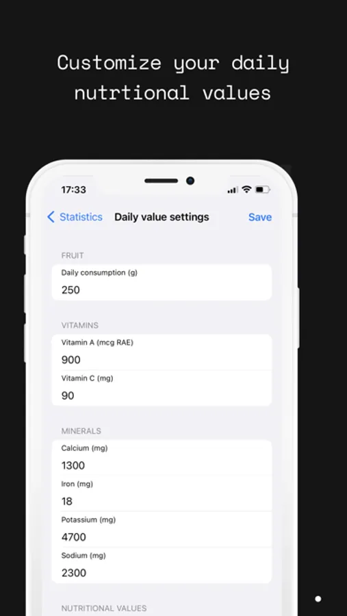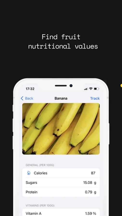 Fruit Nutrition Tracker app lets you track you consumed fruits and see the nutritional values gained from fruit. Fruits are an excellent source of essential vitamins and minerals, and they are high in fiber. Fruits also provide a wide range of health-boosting antioxidants, including flavonoids.