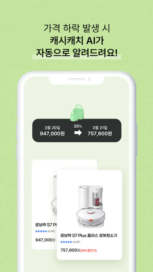 사고 싶은 제품을 캐시캐치 "위시리스트"에 등록하세요. 온라인에서는 상품 가격이 갑자기 변할 수 있어요! 빅세일 놓치지 않게 캐시캐치 AI가 알려드릴께요.
