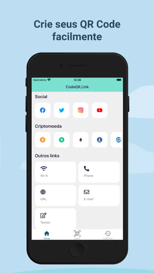 - Create QR Codes for your social networks like Facebook, Instagram, Twitter and Youtube