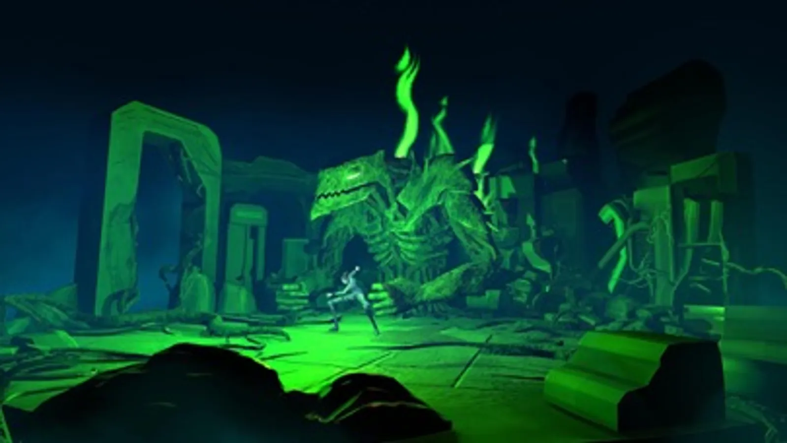 The story of Iago: The Green Eyed Monster explores the origin of Shakespeare’s notorious villain, Iago, reimagined as a woman. Taking place moments after Iago has lost her expected promotion to Lieutenant to the young, unseasoned Cassio, Iago sings a high-energy rock song incorporating lines from Shakespeare’s text, illuminating the inequity and microaggressions she has experienced throughout her time as Ensign in the form of AR holograms. As the song progresses, Iago is overwhelmed with the toxic masculinity of her peers and consumed by her own jealousy and rage, ultimately transforming into "the green-eyed monster" destroying everyone and everything on her path to vengeance.