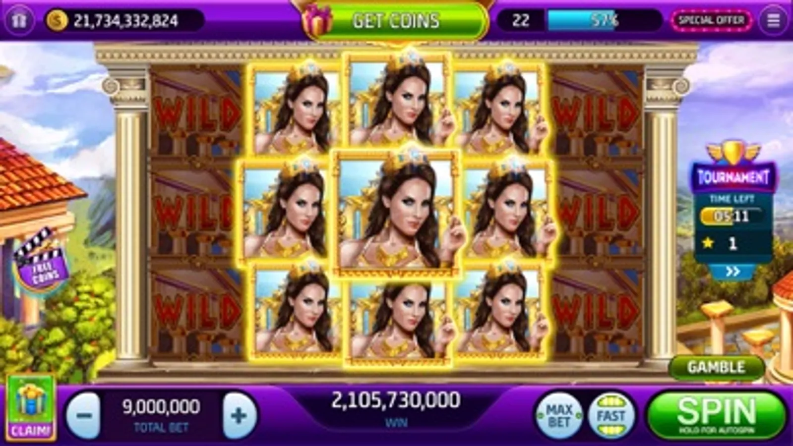 New & Unique Slots Game! Every day you get to play a new slot machine and compete in a global tournament to reach the top of the leaderboard! Download now and get 10 million coins to start playing.